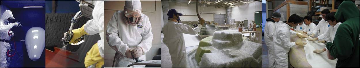 •复合材料工业应用场所:胶衣喷涂、玻璃钢喷涂、切割打磨、研磨抛光、玻璃钢成型